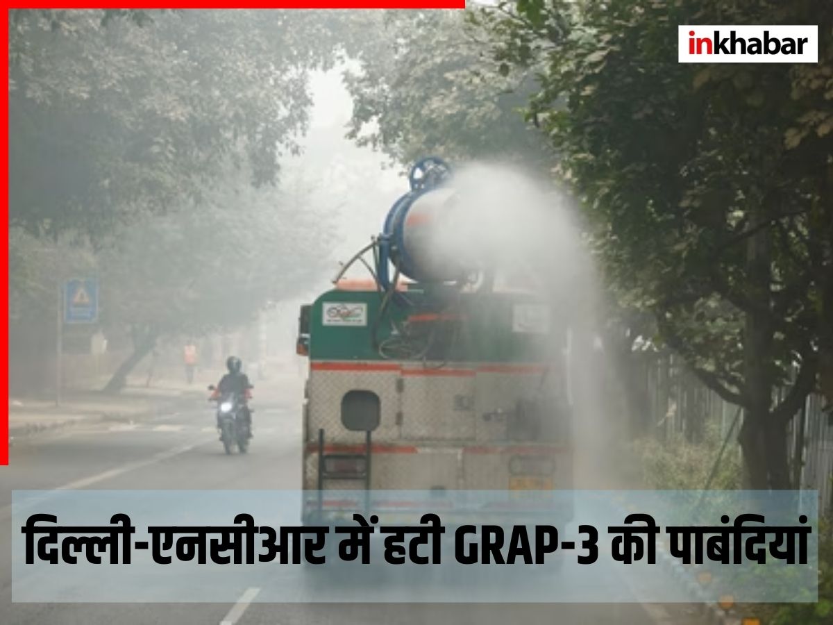 Delhi AQI News: दिल्ली-एनसीआर में बढ़ते वायु प्रदूषण के बीच प्रशासन ने बड़ा फैसला लिया है. दरअसल बताया जा रहा है कि GRAP-3 को हटा दिया गया है. जानकारी सामने आ रही है कि वायु गुणवत्ता में सुधार के बाद एयर क्वालिटी मैनेजमेंट डिपार्टमेंट ने बुधवार (26 नवंबर, 2025) को यह फैसला लागू किया. नतीजतन, GRAP-3 की पाबंदियां तुरंत हटा दी गईं. हवा की क्वालिटी में सुधार के बाद यह फैसला लिया गया.