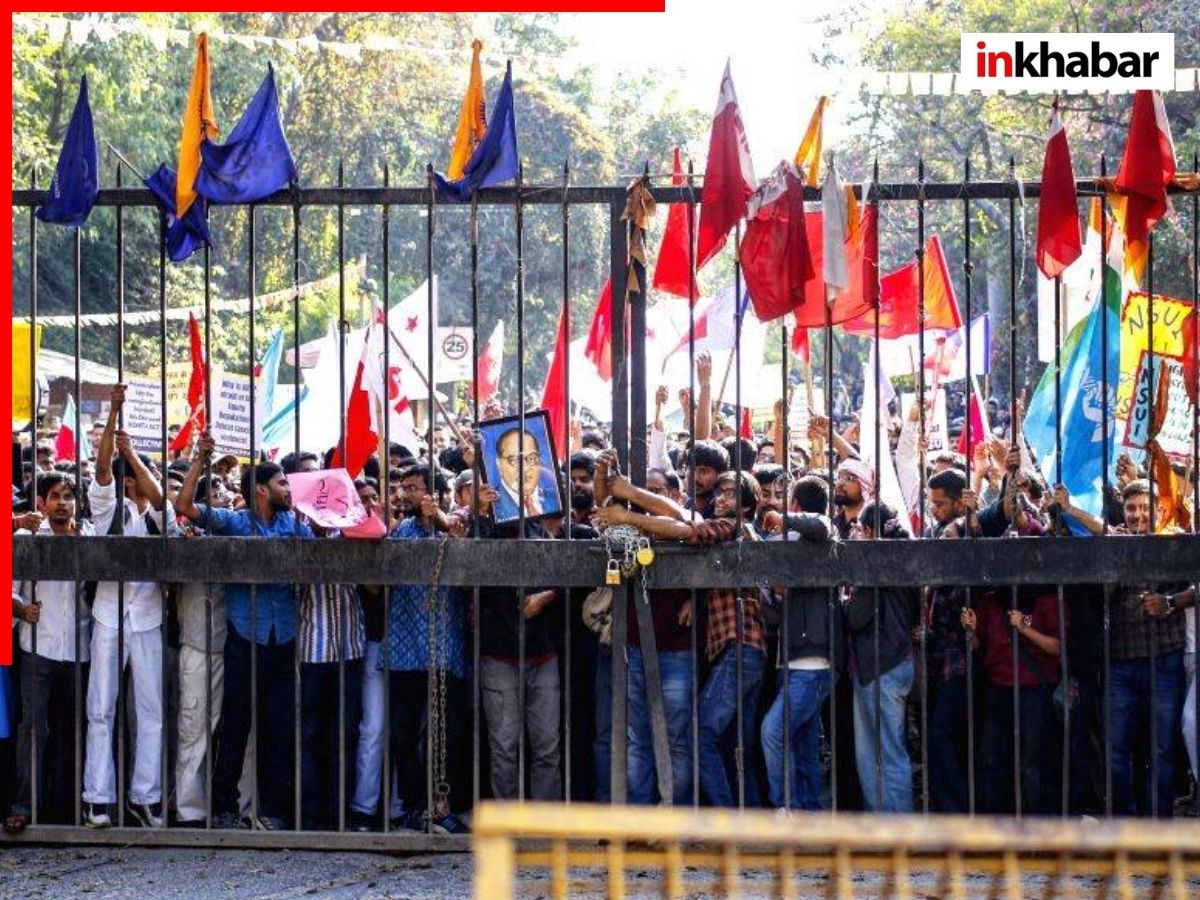 JNU Student Union Protest: देश की राजधानी दिल्ली में  JNU कैंपस में JNU स्टूडेंट यूनियन ने UGC के नियमों को लागू करने की मांग को लेकर कैंपस में शुक्रवार, 27 फरवरी की सुबह प्रदर्शन करना शुरू कर दिया. दिल्ली पुलिस ने स्टूडेंट्स को कैंपस के भीतर रोकने के लिए बैरिकेड्स लगाए थे.