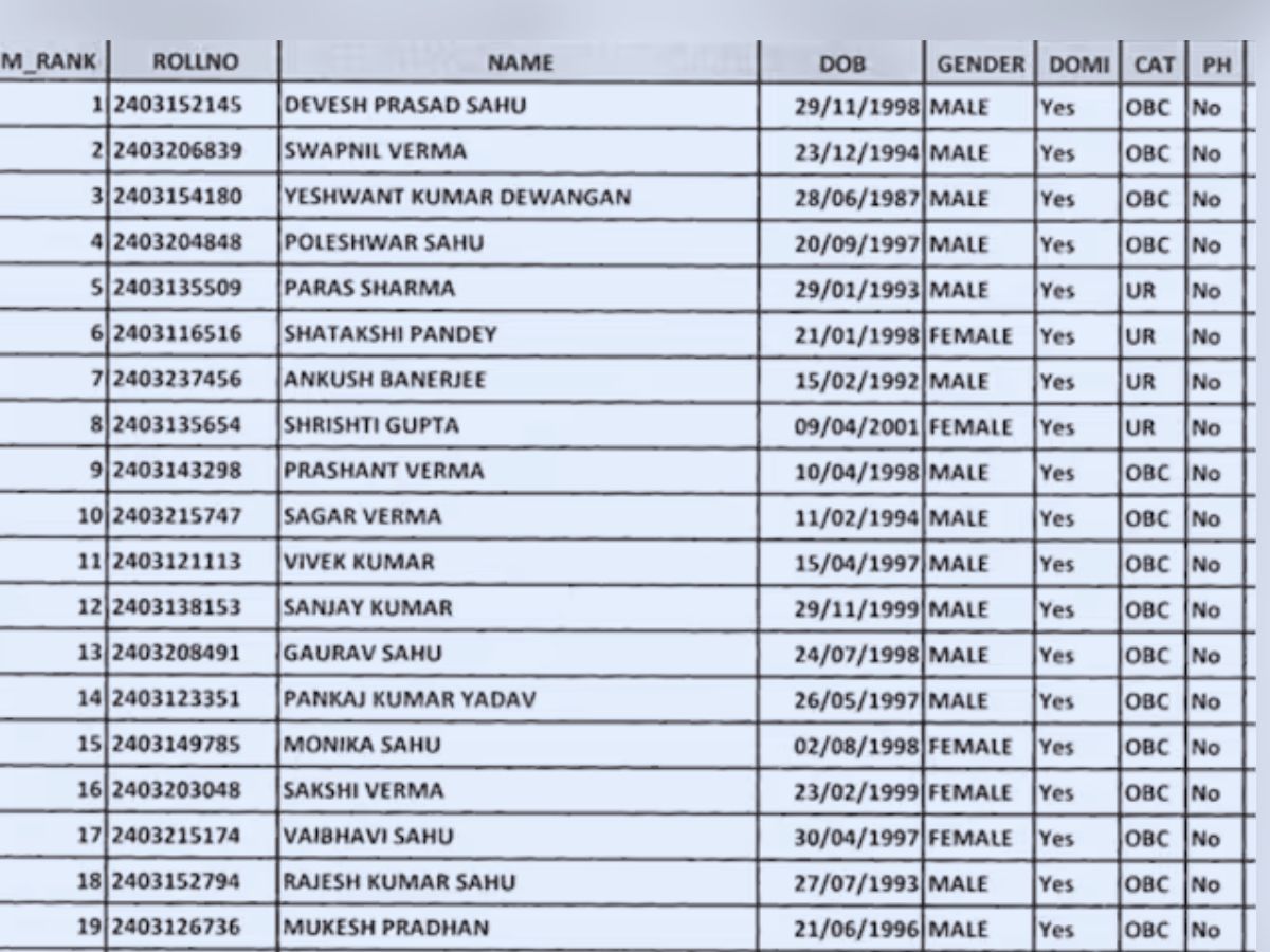 CGPSC SSE Topper 2024: टॉपर्स की लिस्ट