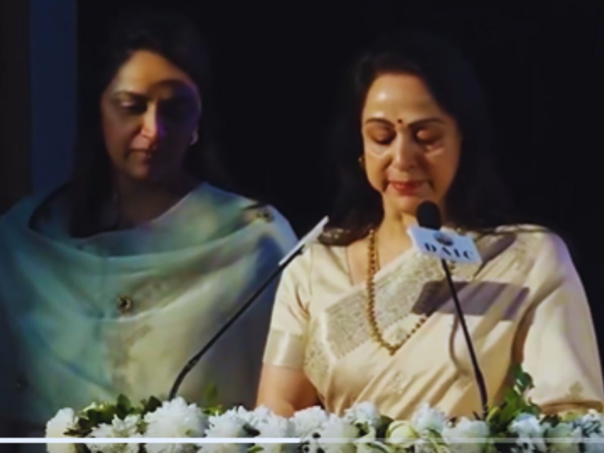 VIDEO | Delhi: BJP MP and actress Hema Malini hosts a public prayer meeting in memory of late actor Dharmendra.