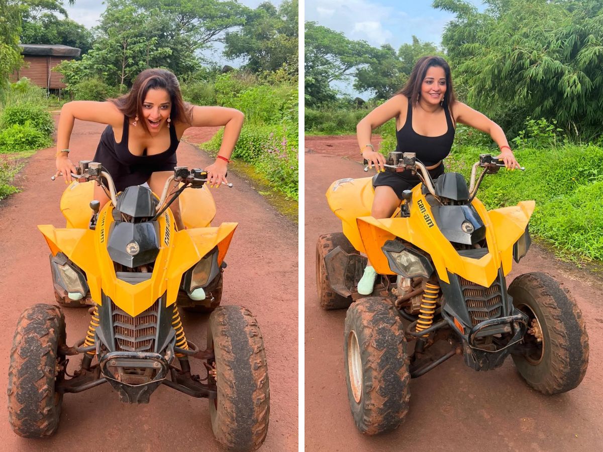 मोनालिसा ने सोशल मीडिया प्लेटफॉर्म इंस्टाग्राम पर कुछ दिनों पहले अपनी फोटोज की सीरीज शेयर की थी। इन फोटोज में मोनालिसा ब्लैक कलर का कटस्लीव और हद से ज्यादा डीपनेक टॉप पहने येलो कलर की ऑल-टेरेन व्हीकल पर बैठ पोज देती नजर आ रही हैं। पहली तस्वीर में मोनालिसा कॉन्फिडेंस और बेबाकी के साथ ऐसे बैठी नजर आ रही हैं जिसकी वजह से उनका क्लीवेज फ्लॉन्ट हो रहा है। इतना ही नहीं, फोटोज में मोनालिसा के लुक से ज्यादा उनकी मुस्कान लोगों का ध्यान अपनी तरफ खींच रही है।