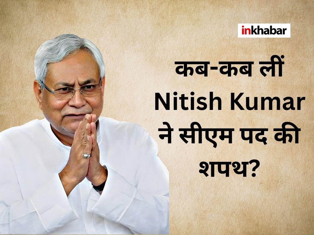 Nitish Kumar Oath: बिहार विधानसभा चुनाव के नतीजे आने के बाद नीतीश कुमार बिहार में अब 10वीं बार सीएम पद की शपथ लेंगे. ऐसे में चलिए जानें कि उन्होंने कब-कब सीएम पद के लिए शपथ लीं है.