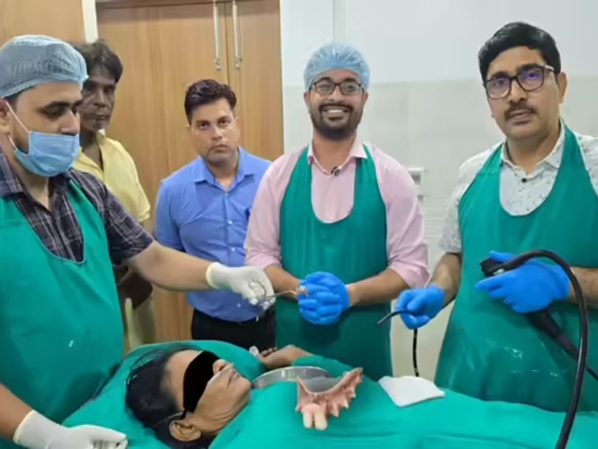 Prayagraj: एक 60 वर्षीय महिला की जान नकली दांत के कारण गंभीर खतरे में पड़ गई थी। घटना तब हुई जब महिला खाना खाते समय अपने नकली दांत को निगल गई। यह दांत उनकी खाने की नली (esophagus) में फंस गया और उन्हें सांस लेने में कठिनाई, तेज दर्द और बार-बार उल्टी जैसी गंभीर समस्याएं होने लगीं। परिवार ने तुरंत महिला को नारायण स्वरूप अस्पताल में भर्ती कराया।