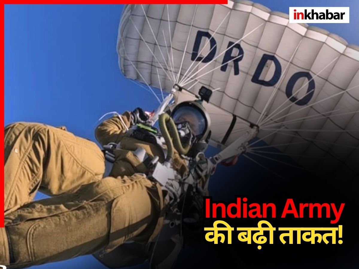 Indian Army: भारतीय सेना की ताकत इतनी है कि दुश्मन नाम सुनते ही कंपकंपा उठी. वहीं हर दिन भारत अपनी सेना की ताकत बढ़ाने का प्रयास करता रहता है. एक बार फिर भारतीय सेना को दुश्मन को मात देने के लिए एक नया उपकरण मिल गया है. जिसके बारे में जानकर आप हैरान रह जाएंगे. दरअसल, भारत ने आकाश में एक और बड़ी उपलब्धि हासिल की है. आपकी जानकारी के लिए बता दें कि रक्षा अनुसंधान और विकास संगठन (DRDO) ने पूरी तरह से स्वदेशी तकनीक से विकसित सैन्य लड़ाकू पैराशूट प्रणाली का सफल परीक्षण किया है. यह परीक्षण 32,000 फीट या लगभग 10 किलोमीटर की ऊँचाई पर किया गया, जहां हवा पतली होती है और तापमान शून्य से कई डिग्री नीचे तक गिर सकता है.