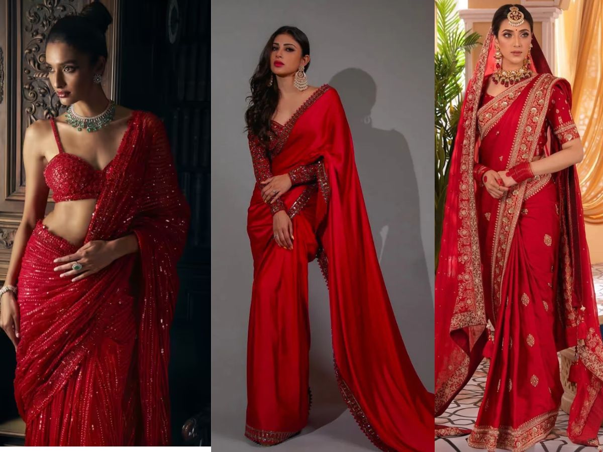 जॉर्जेट रेड साड़ी है एकदम परफेक्ट है. इसका फ्लोई फैब्रिक और स्मूद टेक्सचर इसे बेहद कम्फर्टेबल बनाता है. स्टोन वर्क या बॉर्डर डिजाइन वाली रेड जॉर्जेट साड़ी आपके फेस्टिव लुक को देगा मॉडर्न टच देगा और आपको मौनी रॉय जैसी सुंदर बनाएगा.