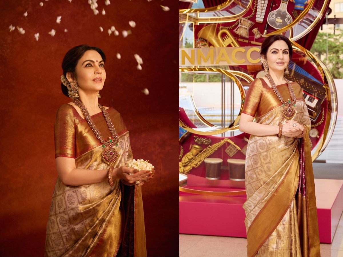 Nita Ambani’s NMACC Event: नीता अंबानी, जो Reliance Foundation की संस्थापक-अध्यक्ष हैं, ने मुंबई में आयोजित Nita Mukesh Ambani Cultural Centre (NMACC) की तीसरी वर्षगांठ के कार्यक्रम में अपनी शानदार उपस्थिति से सभी का ध्यान आकर्षित किया. इस खास मौके पर उन्होंने पारंपरिक और बेहद खूबसूरत आइवरी और गोल्ड कांचीवरम साड़ी पहनी.