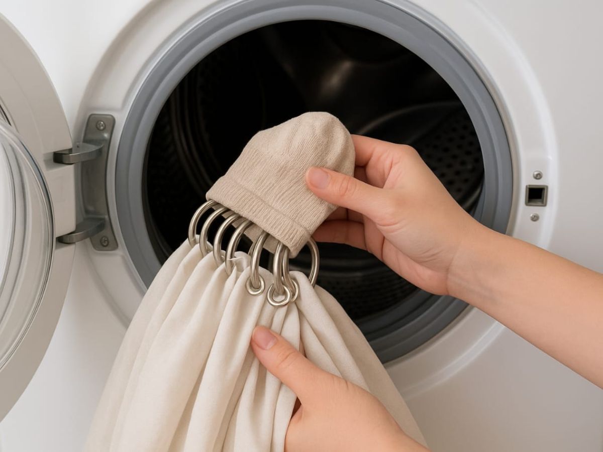आमतौर पर जब लोग पर्दे धोते हैं, तो सबसे पहले उनके छल्ले हटाने लगते हैं, जो काफी समय लेने वाला प्रोसेस होता है और अगर हम बार-बार छल्ले अलग करते हैं, तो कपड़ा फट सकता है। लेकिन इसका सबसे आसान तरीका यह है कि आपको छल्ले हटाने की जरूरत नहीं है। आप पर्दों को वैसे ही मशीन में डाल सकते हैं, बस ध्यान रहे कि सही तरीके से सुरक्षित किया जाए ताकि धुलाई के दौरान कोई नुकसान न हो।