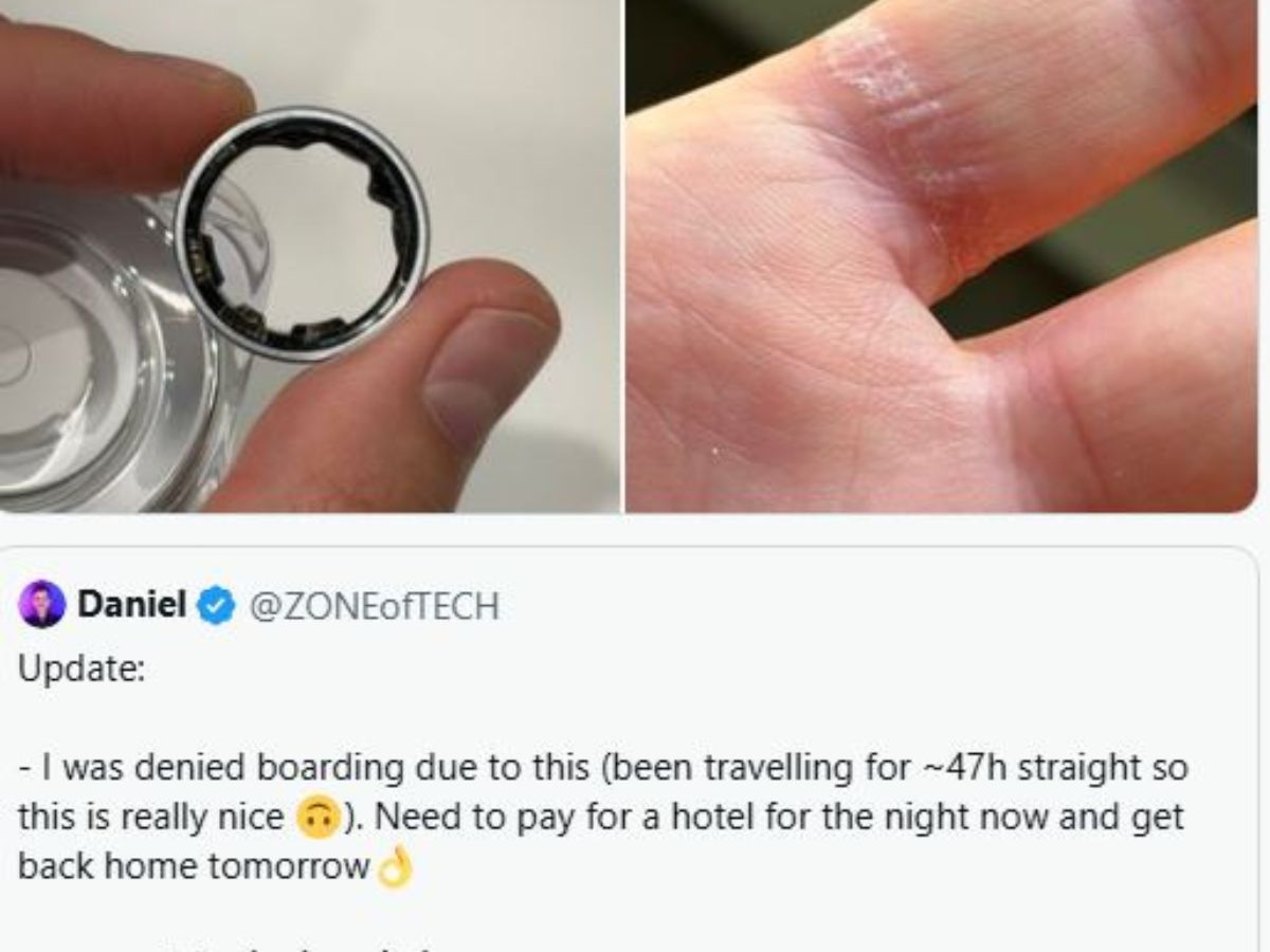 डेनियल ने अपने ‘X’अकाउंट पर पोस्ट शेयर करते हुए कहा कि यह घटना उस वक्त हुई जब वह एक फ्लाइट में बोर्ड करने जा रहे थे. उनकी सैमसंग गैलेक्सी रिंग की बैटरी के फूलने (Battery Swelling) से उनकी उंगली में ही फंस गई. साथ ही उन्होंने आगे कहा कि रिंग इतनी भयंकर फंसी थी कि वह अपनी उंगली से उसे खुद नहीं निकाल पाए. इसकी वजह से उन्हें विमान में भी चढ़ने से साफ तौर पर इंकार कर दिया गया. वहीं, अंगूठी निकलवाने के लिए उन्हें आखिर में मजबूरन अस्पताल जाना पड़ गया.