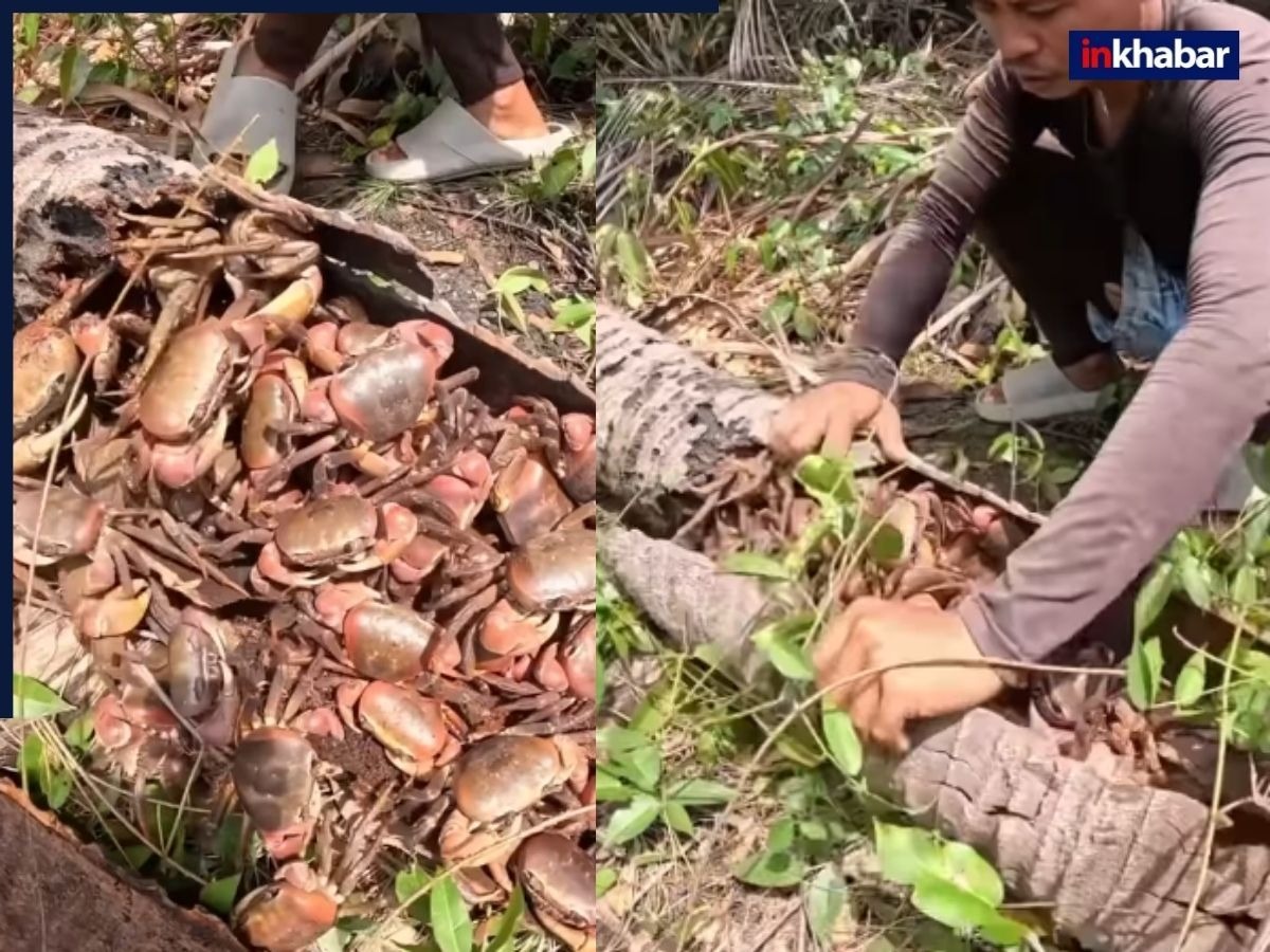 इस बारे में जानकारी देते हुए एक किसान ने कहा कि अंदर चूहे या सांप हो सकते हैं लेकिन हम डर रहे थे. सुबह कुछ लोग इकट्ठा हुए कुल्हाड़ी ली और तने पर वार किया. जब तना खुला तो सभी हैरान रह गए. अंदर केकड़ों का पूरा परिवार था! वीडियो में आप देख सकते हैं कि नारियल के इस तने में से इतने सारे केकड़े निकलते है कि उनकी गिनती नहीं की जा सकती थी. यह दृश्य इंडोनेशिया के सुमात्रा या जावा के ग्रामीण क्षेत्र का लगता है, जहां नारियल के बागान आम हैं.