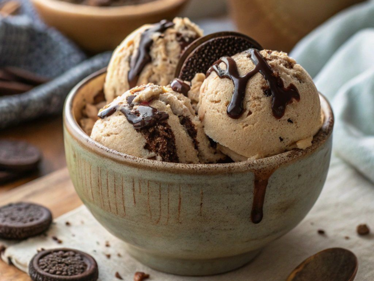जब आइसक्रीम पूरी तरह जम जाए, तब इसे स्कूप करके कप या कोन में भरें। ऊपर से चॉकलेट सॉस या कॉफी पाउडर छिड़क सकते हैं।
