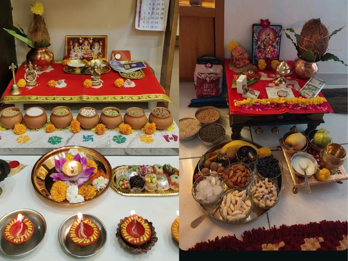 दिवाली पर लक्ष्मी पूजा के लिए विभिन्न वस्तुओं की आवश्यकता होती है. इसलिए, आज हम आपको उन जरूरी चीजों के बारे में बताएंगे जो आपको पूजा के दौरान इधर-उधर भागने की परेशानी से बचाएंगी. सबसे पहले, आपको देवी लक्ष्मी और भगवान गणेश की मूर्तियां इकट्ठा करनी होंगी. इसके अलावा, आपको एक आसन, एक चांदी का सिक्का, कुबेर और लक्ष्मी यंत्र की भी आवश्यकता होगी. इसके अलावा, देवी लक्ष्मी के लिए लाल वस्त्र और चूड़ियां भी जरूरी हैं. भगवान गणेश के लिए पीले पातक पुष्पों की माला, अशोक के पत्ते, मिट्टी या पीतल का कलश, आम के पत्ते, पांच प्रकार के अनाज, पांच प्रकार की मिठाइयां, पांच प्रकार के फल, खीर, कमल के फूल, गुलाब के फूल, केसर, चंदन, कपूर, दीपक, बत्ती, सरसों का तेल और घी, कुमकुम, सिंदूर, अबीर, साबुत हल्दी, कौड़ियांं, गोमती चक्र, हल्दी की गांठें, पान के पत्ते, कमल गट्टे की माला, पंचमेवा (पांच मेवों के फल), गंगाजल, साबुत धनिया, रूई, सुपारी, पान का पत्ता, लौंग, इलायची, जल का लोटा, खीर, बताशा, कलम, लटकन वाला नारियल, धूपबत्ती, चौमुखा बड़ा दीपक, तुलसी के पत्ते, मौली, इत्र की शीशी, दूध, दही, चीनी, शहद, गन्ना, शरीफा, सिंघाड़ा, कुशा या दूर्वा घास भगवान गणेश के लिए आवश्यक हैं.