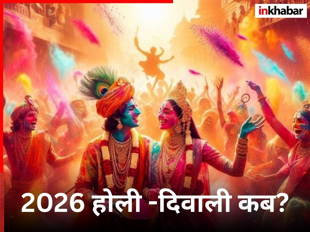 Holi Diwali 2026 Dates: साल 2026 की शुरुआत होने वाली है. हिंदू धर्म के 2 बड़े त्योहार है होली और दिवाली. हिंदू धर्म में हर त्योहार का अपना अलग और विशेष महत्व है. साल 2026 में होली और दिवाली किस-किस दिन मनाई जाएगी. यहां देखें दो प्रमुख त्योहारों की सही डेट और शुभ मुहूर्त.