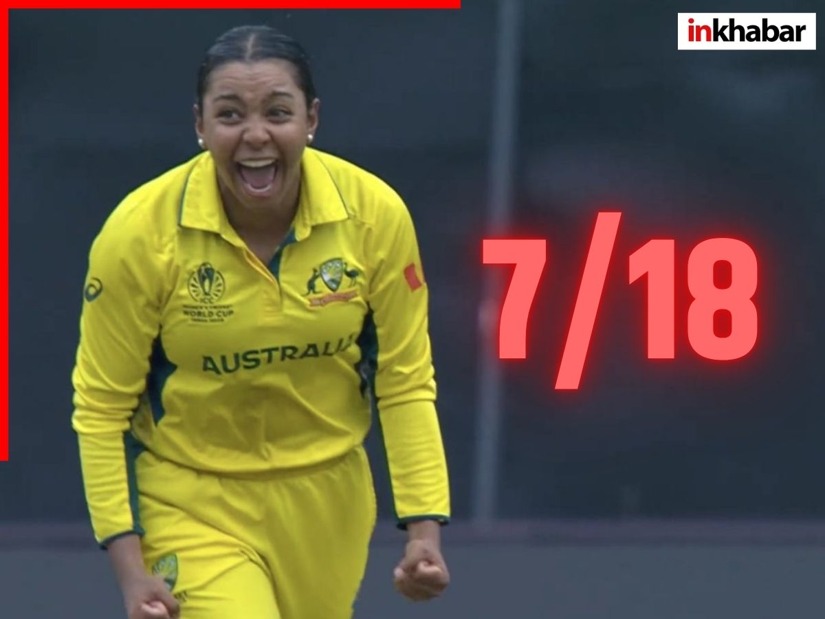 Australia Beat South Africa: विमेंस वर्ल्ड कप 2025 का 26वां मैच दक्षिण अफ्रीका और ऑस्ट्रेलिया के बीच इंदौर के होल्कर स्टेडियम में खेला गया. अलाना किंग की घातक गेंदबाजी की बदौलत ऑस्ट्रेलिया ने दक्षिण अफ्रीका पर 7 विकेट से शानदार जीत हासिल की. टॉस जीतकर ऑस्ट्रेलिया ने पहले गेंदबाजी करने का फैसला किया. पहले बल्लेबाजी करते हुए, दक्षिण अफ्रीका 24 ओवर में मात्र 97 रन पर ढेर हो गई. कप्तान लॉरा वोल्वार्ड्ट ने 26 गेंदों पर 31 रन, सिनालो जाफ्ता ने 17 गेंदों पर 29 रन और नादिन डी क्लार्क ने 23 गेंदों पर 14 रन बनाए. अन्य बल्लेबाज़ दहाई का आंकड़ा भी नहीं छू पाईं.