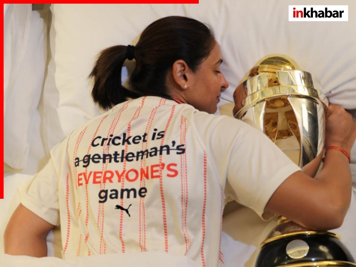 अपने शानदार 16 साल के करियर में पहली विश्व कप ट्रॉफी जीतने के बाद, हरमनप्रीत ने अपनी टी-शर्ट पर एक संदेश के साथ ट्रॉफी की एक तस्वीर पोस्ट की. उन्होंने जो टी-शर्ट पहनी थी, उसके पीछे एक पारंपरिक कहावत लिखी थी, लेकिन एक ट्विस्ट के साथ. उनकी टी-शर्ट पर लिखा स्लोगन था: ‘क्रिकेट जेंटलमैन का (हटा दिया गया) हर किसी का खेल है.’