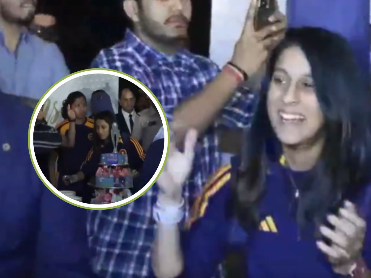 Jemimah Rodrigues Viral Video : भारतीय महिला क्रिकेट टीम ने हाल ही में आईसीसी महिला वर्ल्ड कप 2025 जीता है और उसके बाद कल टीम दिल्ली पहुंची थी. दिल्ली में उनका जमकर स्वागत हुआ और पूरी टीम दिल्ली के ताज होटल में रुकी थी. होटल में भी टीम के वर्ल्ड कप जीतने की खुशी में जमकर जश्न मनाया गया है. ANI ने सोशल मीडिया पर एक वीडियो शेयर किया जिसमें सभी खिलाड़ी एक साथ मिलकर केक काट रहे हैं. ये केक इंडिया की टीम वर्ल्ड कप जीत गई थी इस खुशी में काटा गया. केक काटने के बाद ढोल बजे और फिर पार्टी का माहौल बन गया था.