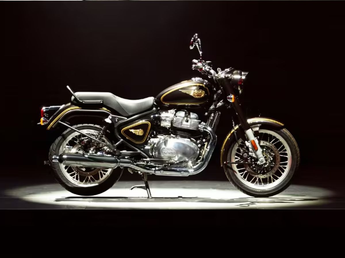 Royal Enfield ने कस्टम डिजाइनर Rough Crafts के साथ मिलकर यह स्पेशल एडिशन बनाया है. इसमें गोल्ड-प्लेटेड स्ट्राइप्स, मैट ब्लैक बॉडी, और क्विल्टेड लेदर सीट दी गई है. इसके गोल्ड फोर्क ट्यूब्स और अलॉय रिम्स इसे प्रीमियम लुक देते हैं. यह बाइक Royal Enfield के कस्टम बिल्ड का नया चेहरा मानी जा रही है.
