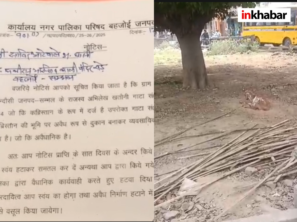 Bahjoi Encroachment News: मुख्यालय बहजोई के काली मंदिर मैदान के निकट स्थित कब्रिस्तान की भूमि पर अवैध कब्जे को लेकर जारी नोटिस के बाद भी प्रशासनिक कार्रवाई ठप रही. करीब एक महा पूर्व नगर पालिका बहजोई ने तहसील चंदौसी की रिपोर्ट के आधार पर गाटा संख्या 756 की .5140 हेक्टेयर कब्रिस्तान की भूमि पर अवैध रूप से बनाई गई 13 दुकानों को चिन्हित कर नोटिस जारी किए थे और एक सप्ताह में कब्जा हटाने के निर्देश दिए थे, लेकिन अब तक ना तो कब्जा हटाया गया और ना ही किसी प्रकार की प्रशासनिक कार्रवाई की गई.