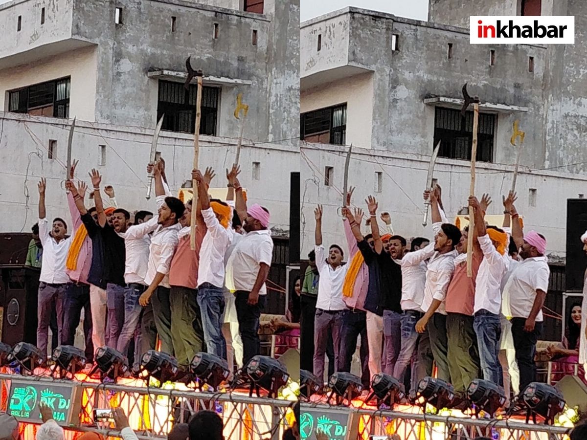 Uttar Pradesh : उत्तर प्रदेश के बलिया जिले में एक सार्वजनिक कार्यक्रम का वीडियो सोशल मीडिया पर तेजी से वायरल हो रहा है. इस वीडियो में भीड़ के बीच खुलेआम हथियारों का प्रदर्शन करते हुए कुछ युवक नजर आ रहे हैं. वे तलवार और फरसा जैसे शस्त्र लहराते हुए मंच तक पहुंचते दिखाई देते हैं.