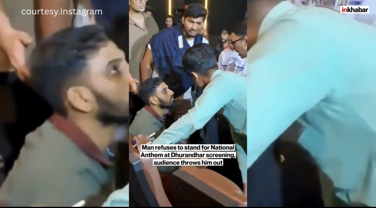 Viral Video: ‘धुरंधर’ फिल्म शुरू होने से ठीक पहले जब राष्ट्रगान बज रहा था, तो एक व्यक्ति के खड़े न होने पर सिनेमा हॉल में तनावपूर्ण स्थिति उत्पन्न हो गई, साथी दर्शकों ने तत्काल विरोध करते हुए उससे राष्ट्र के प्रति सम्मान दिखाने को कहा, बात बढ़ने पर भीड़ ने मिलकर उस व्यक्ति को बलपूर्वक हॉल से बाहर निकाल दिया.