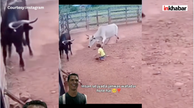 Viral Video: हिंदू धर्म में गाय को मां का दर्जा दिया गया है. सोशल मीडिया पर वायरल हो रहे है इस वीडियो में देख जा सकता है कि एक बच्चे की जिंदगी गाय ने बचा ली. वीडियो में देखा जा सकता है कि बच्चा मस्त खेल रहा था. तभी सांड ने हमला करने की कोशिश की, लेकिन सफेद वाली गाय ने उस हमले को नाकाम कर बच्चे की जान बचाई. अब यह वीडियो तेजी से वायरल हो रहा है.