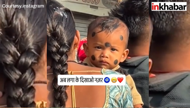 Cute Baby Having Kala Tika: सोशल मीडिया पर अब क्यूटनेस का नया ट्रेंड छा गया है, एक भाभी ने अपने छोटे से बच्चे को पूरा काला टीका पोता, जिससे बच्चे की मासूमियत और भी निखर गई,और बच्चा काला टिका में बेहद क्यूट लगा जिससे सबका दिल उसपरआगया, इस मजेदार और प्यारे वीडियो ने इंटरनेट पर तहलका मचा दिया है, फैंस बच्चे की क्यूटनेस पर फिदा हो गए और कमेंट्स में तारीफों की बाढ़ सी आ गई, यह वीडियो परिवार और भारतीय परंपरा का भी अनोखा संगम दिखा रहा है.