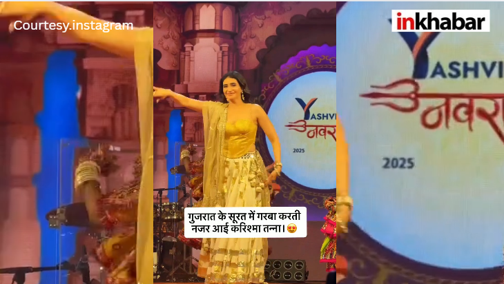 Karishma Tanna In Gujrat: गुजरात के गरबा महोत्सव में करिश्मा तन्ना (Karishma Tanna) ने स्टेज पर तहलका मचा दिया, अपने खूबसूरत लहंगे और धमाकेदार डांस मूव्स के साथ उन्होंने फैंस का दिल जीत लिया, लोगों ने कहा — यही है गुजराती दिल जीतने का सही तरीका करिश्मा की स्टाइल, एनर्जी और परफॉर्मेंस ने सोशल मीडिया पर तहलका मचा दिया है, वीडियो वायरल हो रहा है और फैंस उनकी गरबा क्वालिटी और ग्लैमरस लुक की तारीफ कर रहे हैं.