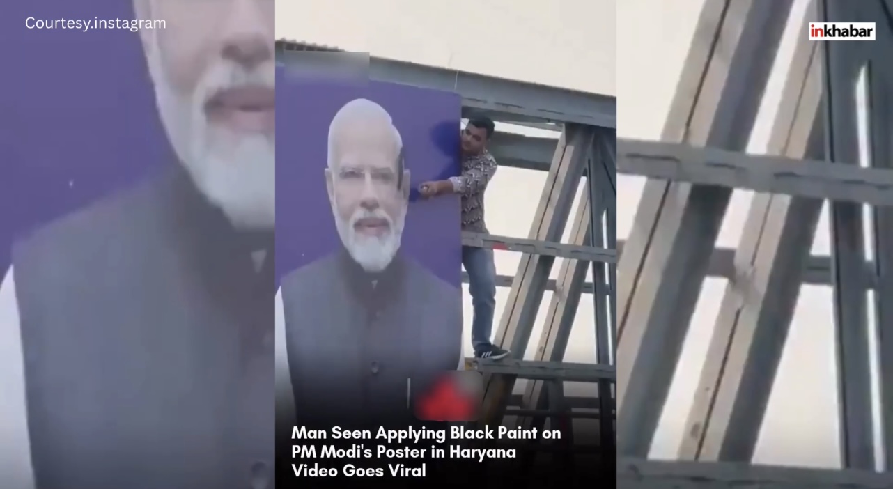 Viral Video: हरियाणा में एक व्यक्ति द्वारा एक देश के PM नरेंद्र मोदी के पोस्टर पर काला पेंट लगाते हुए रिकॉर्ड किया गया एक वीडियो सोशल मीडिया पर वायरल हो रहा है, इस वीडियो में दिख रहे व्यक्ति ने एक महत्वपूर्ण व्यक्ति की तस्वीर को विकृत कर दिया है, जिससे ऑनलाइन प्लेटफॉर्म पर ध्यान और चर्चा बढ़ी है, इस प्रकार की सार्वजनिक तोड़फोड़ की घटना ने इंटरनेट पर तुरंत प्रतिक्रियाएं उत्पन्न की हैं, अधिकारियों ने इस कृत्य का संज्ञान लिया है और वीडियो फुटेज के आधार पर कार्रवाई की जा रही है.