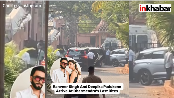 Last Rites Of Dharam Ji: रणवीर सिंह (Ranveer Singh) और दीपिका पादुकोण( Deepika Padukone) ने बॉलीवुड के ‘ही-मैन’ धरमेंद्र को अंतिम श्रद्धांजलि देने पहुंचे, जहां दोनों स्टार्स बेहद भावुक नजर आए, अंतिम दर्शन के दौरान रणवीर और दीपिका ने खड़े होकर अपनी गहरी संवेदनाएं प्रकट कीं और दिवंगत अभिनेता के प्रति सम्मान व्यक्त किया, माहौल शोक से भरा हुआ था, और दोनों कलाकारों के चेहरे पर धरमेंद्र के प्रति आदर और दुख स्पष्ट झलक रहा था, फिल्म इंडस्ट्री के इस दिग्गज अभिनेता को अलविदा कहते हुए हर किसी की आंखें नम थीं.
