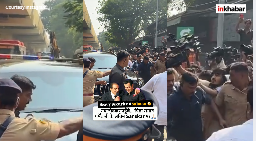 बॉलीवुड के ‘ही-मैन’ धर्मेंद्र जी के निधन के बाद, उनके अंतिम संस्कार में शामिल होने के लिए फिल्म इंडस्ट्री के कई दिग्गज सितारे पहुंचे, जिनमें सुपरस्टार सलमान खान भी शामिल थे, भारी सुरक्षा व्यवस्था के बीच सलमान खान ने वेन्यू पहुंचकर नम आंखों से अपने गुरु समान धर्मेंद्र जी को अंतिम विदाई दी, इस दौरान पूरा माहौल शोक संतप्त था और फैंस तथा इंडस्ट्री के लोग अपने प्रिय अभिनेता को श्रद्धांजलि दे रहे थे.