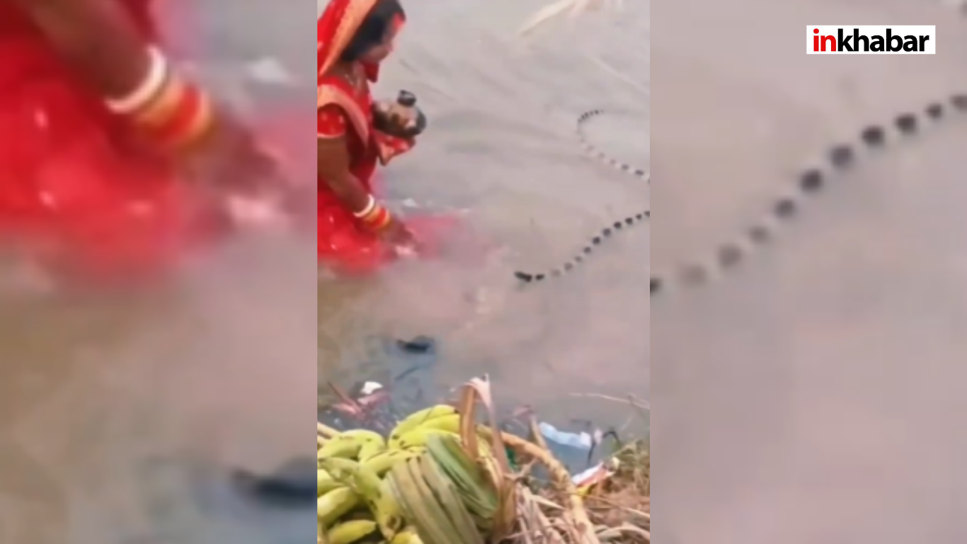 Snake Viral video on Chhath Puja: छठ पूजा से जुड़ी कई तरह की वीडियो वायरल हो रहा हैं. इन्हीं में से एक वीडियो इस समय खूब चर्चा में है. वीडियो में आप देख सकते है कि एक महिला अर्घ दे रही होती है, तभी अचानक से दुनिया का सबसे ज्यादा जहरीला सांप महिला के पास आ जाता है, लेकिन हैरानी की बता यह है कि महिला बिलकुल भी नहीं डरती है. अब यह वीडियो तेजी से वायरल हो रहा है.