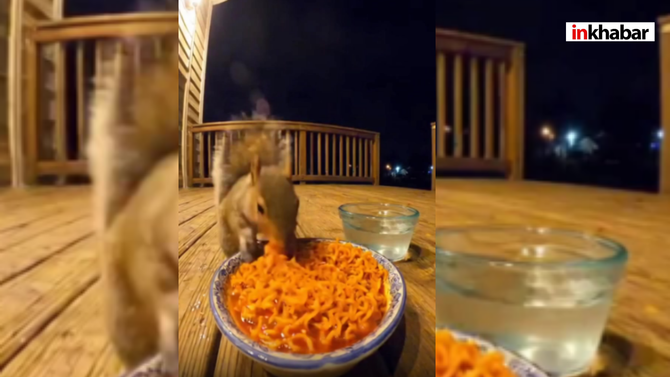 Animal Cute Video: सोशल मीडिया पर एक प्यारा और मजेदार वीडियो तेजी से वायरल हो रहा है. जिसमें गिलहरी नजर आ रही है. वीडियो में देखा जा सकता है कि गिलहरी पहले मैगी खा रही है और फिर पानी पी रही है. उसकी मासूम हरकत और खाने-पीने का अंदाज देखकर लोग खूब हंस रहे हैं और वीडियो पर कमेंट कर रहे है.