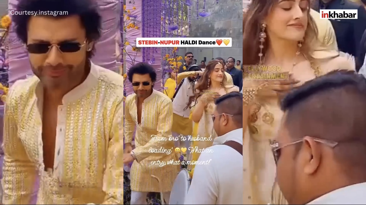 Viral Dance: मशहूर सिंगर स्टेबिन बेन और एक्ट्रेस नूपुर सनन की शादी की रस्में शुरू हो गई हैं, उनके हल्दी फंक्शन की शुरुआत एक बहुत ही प्यारे डांस परफॉर्मेंस के साथ हुई, जिसमें दोनों की केमिस्ट्री देखते ही बन रही है, पीले रंग के लिबास में सजे इस कपल का मस्ती भरा अंदाज सोशल मीडिया पर खूब चर्चा बटोर रहा है.