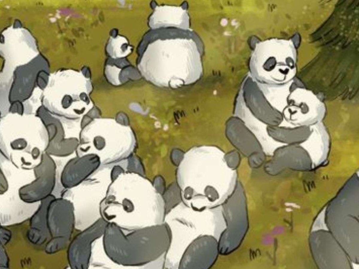 चित्र के केंद्र में एक बड़ा पांडा बैठा हुआ है, जो पहली नजर में सबसे स्पष्ट दिखाई देता है. इसके चारों ओर पेड़, झाड़ियाँ और चट्टानों के बीच कई छोटे पांडा चेहरे छिपे हुए हैं. इस पांडा को पहचानना आसान है, लेकिन इसके आसपास के छोटे पांडा चेहरों को ढूँढने के लिए गहरी नजर और ध्यान केंद्रित करना आवश्यक है. यह पांडा आपके अवलोकन कौशल की शुरुआत के रूप में कार्य करता है.