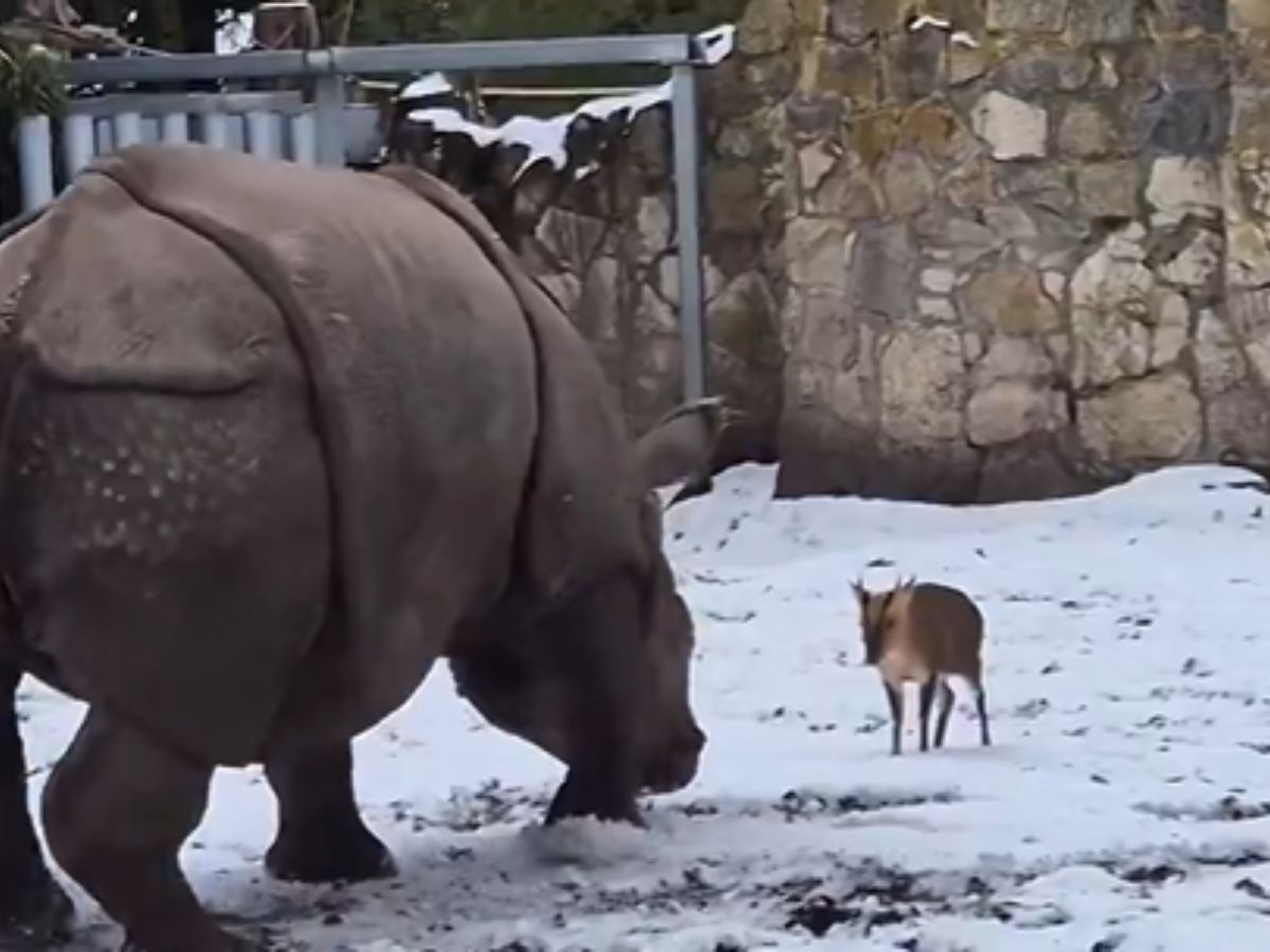 NEW: Small deer takes on a 1.7-ton rhino at the Wroclaw Zoo in Poland.