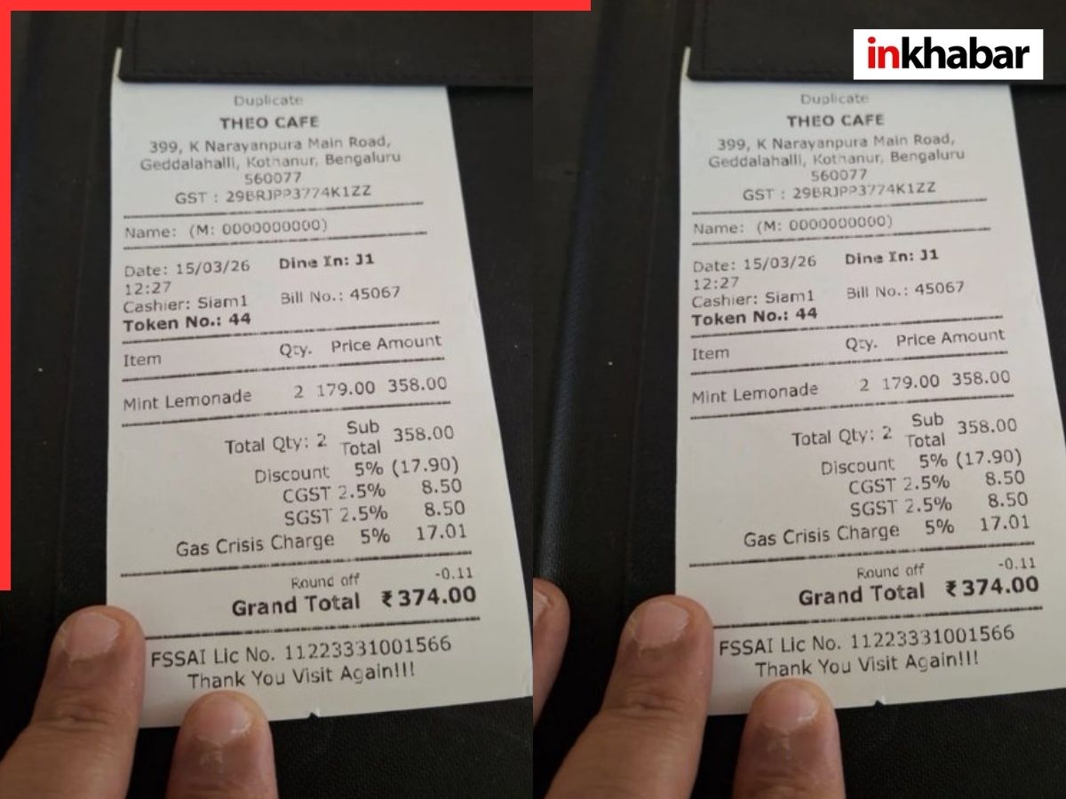 बेंगलुरु के एक कैफे (Theo Cafe) का एक बिल सोशल मीडिया पर आग की तरह वायरल हो रहा है. इस बिल को देखकर लोग हैरान रह गए हैं. क्योंकि कैफे ने ग्राहक से 5 प्रतिशत ‘गैस क्राइसिस चार्ज’ वसूल किया है. ताज्जुब की बात यह है कि ग्राहक ने ‘मिंट लेमोनेड’ (शिकंजी) ऑर्डर की थी. वहीं अब इस बिल के लोग सोशल मीडिया पर खूब मजे ले रहे हैं. लोग सवाल कर रहे हैं कि ‘भाई, शिकंजी बनाने में कौन-सी गैस लगती है? क्या नींबू को गर्म कर डाला गया था?