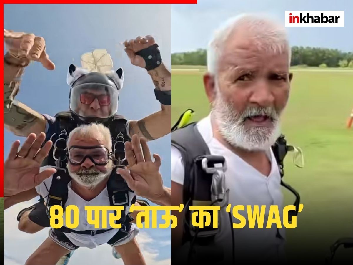 Viral Video: स्काई डाइविंग करना हर किसी के बस की बात नहीं, कई बार मन बनाने के बाद भी जगह पर पहुंच कर स्काई डाइविंग करने की हिम्मत नहीं होती. लेकिन हरियाणा के इन ताऊ के जज़्बे को सलाम करना तो बनता है. उम्र 80 के पार लेकिन जोश और हिम्मत में किसी से पीछे नहीं. इनकी कुछ कर गुजरने की इच्छा को लोग तक देखकर हैरान हो गए हैं.