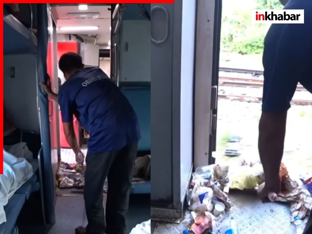 Viral Video: भारतीय ट्रेन में यात्रा कर रहे विदेशी पर्यटकों द्वारा कैद की गई इस क्लिप में कर्मचारी सीटों के नीचे से कचरा झाड़ते और लापरवाही से उसे बाहर फेंकते हुए दिखाई दे रहे हैं.