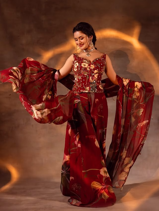 Avneet Kaur की ग्लैमरस फोटोशूट में लाल शरारा ने लूटी लाइमलाइट