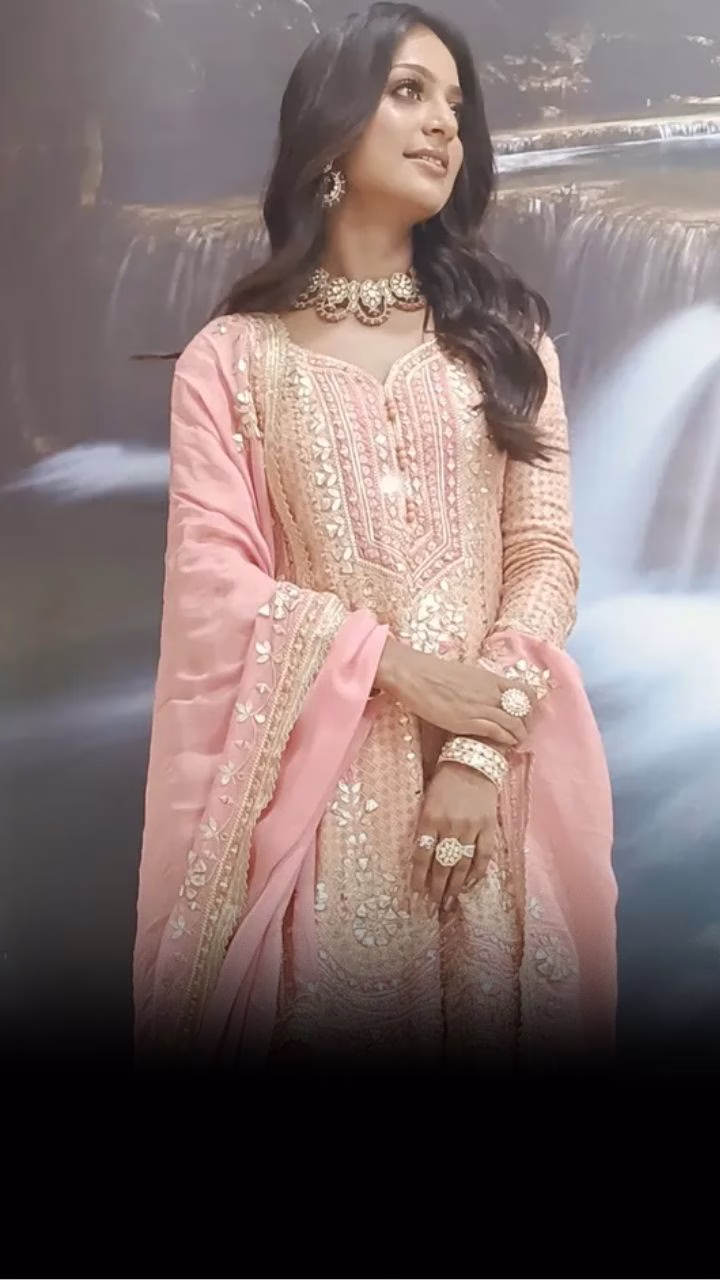 पीच कलर के हैवी गोल्डन वर्क वाले सूट में मोनालिसा किसी कयामत से कम नहीं लग रही हैं.