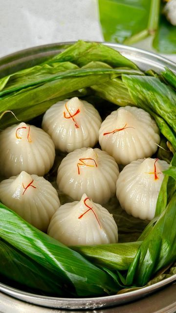 स्टीमर में पानी गरम करें, मोदक को केले के पत्ते पर रखें ताकि चिपके नहीं और स्टीम करने में खुशबू बढ़े।