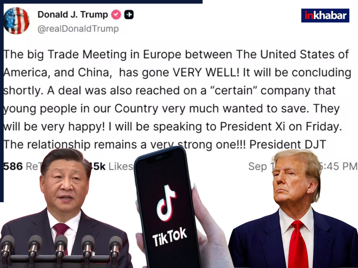 Trump ने अपने ट्रुथ सोशल अकाउंट पर लिखा कि “एक ‘निश्चित’ कंपनी पर भी समझौता हुआ है, जिसे हमारे देश के युवा बचाना चाहते थे।” उन्होंने अमेरिका, यूरोपीय संघ और चीन के बीच व्यापार बैठक की प्रशंसा की और कहा कि “यह बैठक बहुत अच्छी रही है और तीनों पक्ष आगे और भी मुद्दों पर बातचीत के माध्यम से उन्हें सुलझाने का प्रयास करेंगे.” Trump ने कहा कि वह शुक्रवार को चीनी राष्ट्रपति Xi Jinping से वार्ता करेंगे.