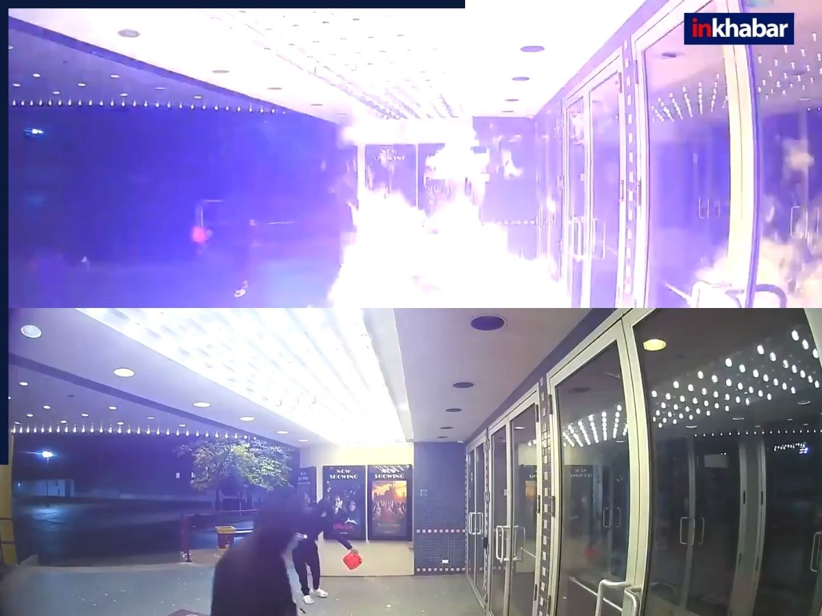 A cinema hall in Canada’s Oakville was set to fire by miscreants. CCTV videos showed them pouring petrol on the theatre’s door and setting it on fire. pic.twitter.com/9vrJyN9Xze